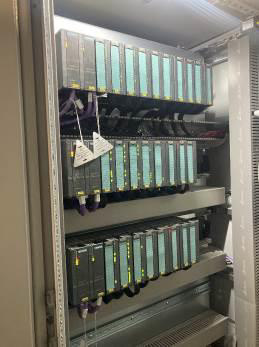 - трех дублированных процессоров в SIMATIC S7-414-5H (по одному для обеспечения работы котельного, турбинного и общеблочного оборудования энергоблока), обеспечивающих выполнение алгоритмов управления при ведении технологического процесса энергоблока на основе принятой измерительной информации измерительных модулей комплекса;