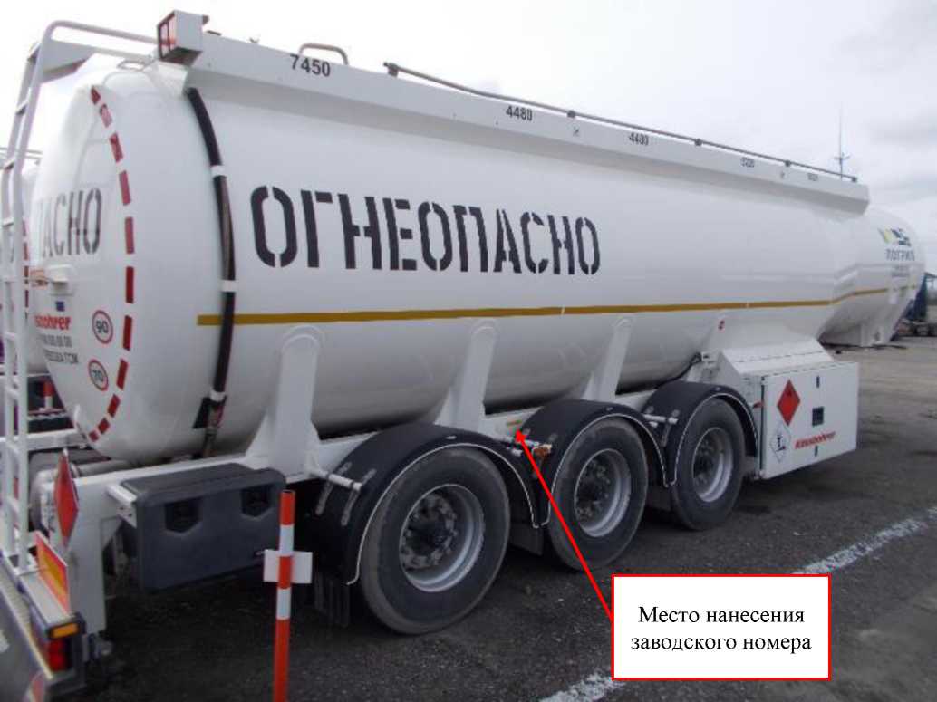 Общий вид полуприцепов-цистерн KASSBOHRER TANKAUFLIEGER с указанием места нанесения заводского номера приведен на рисунке 1.