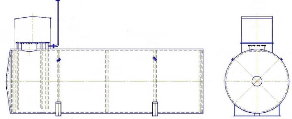 Резервуары представляют собой горизонтально расположенные цилиндрические стальные сосуды с днищами.