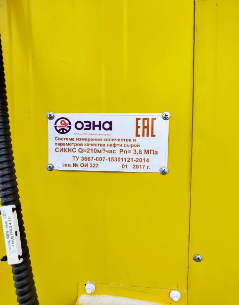 Место расположения СИКНС, заводской номер ОИ 322: площадка насосной станции Восточно - Правдинского месторождения цеха подготовки и перекачки нефти №5 управления подготовки и перекачки нефти. Пломбирование средств измерений, находящихся в составе СИКНС осуществляется согласно требований их описаний типа, МИ 3002-2006 и/или разработанной владельцем СИКНС инструкции. Заводской номер в виде буквенно-цифрового обозначения нанесён на информационной табличке методом аэрографии. Нанесение знака поверки на СИКНС не предусмотрено.