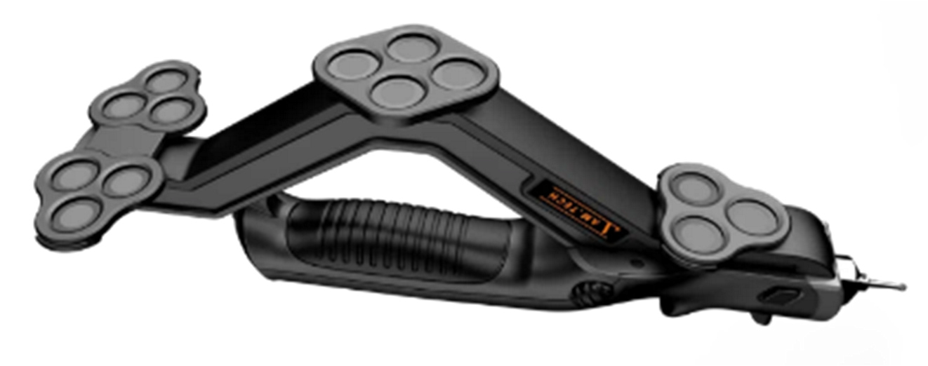 Трекер представляет собой устройство с двумя встроенными камерами, которое используется для определения положения и ориентации в пространстве сканера, щупа и контрольных маркеров с помощью нанесённых на них оптических рефлекторов, и их преобразования в пространственные координаты. Трекер может устанавливаться на штатив, стойку или настенный кронштейн.