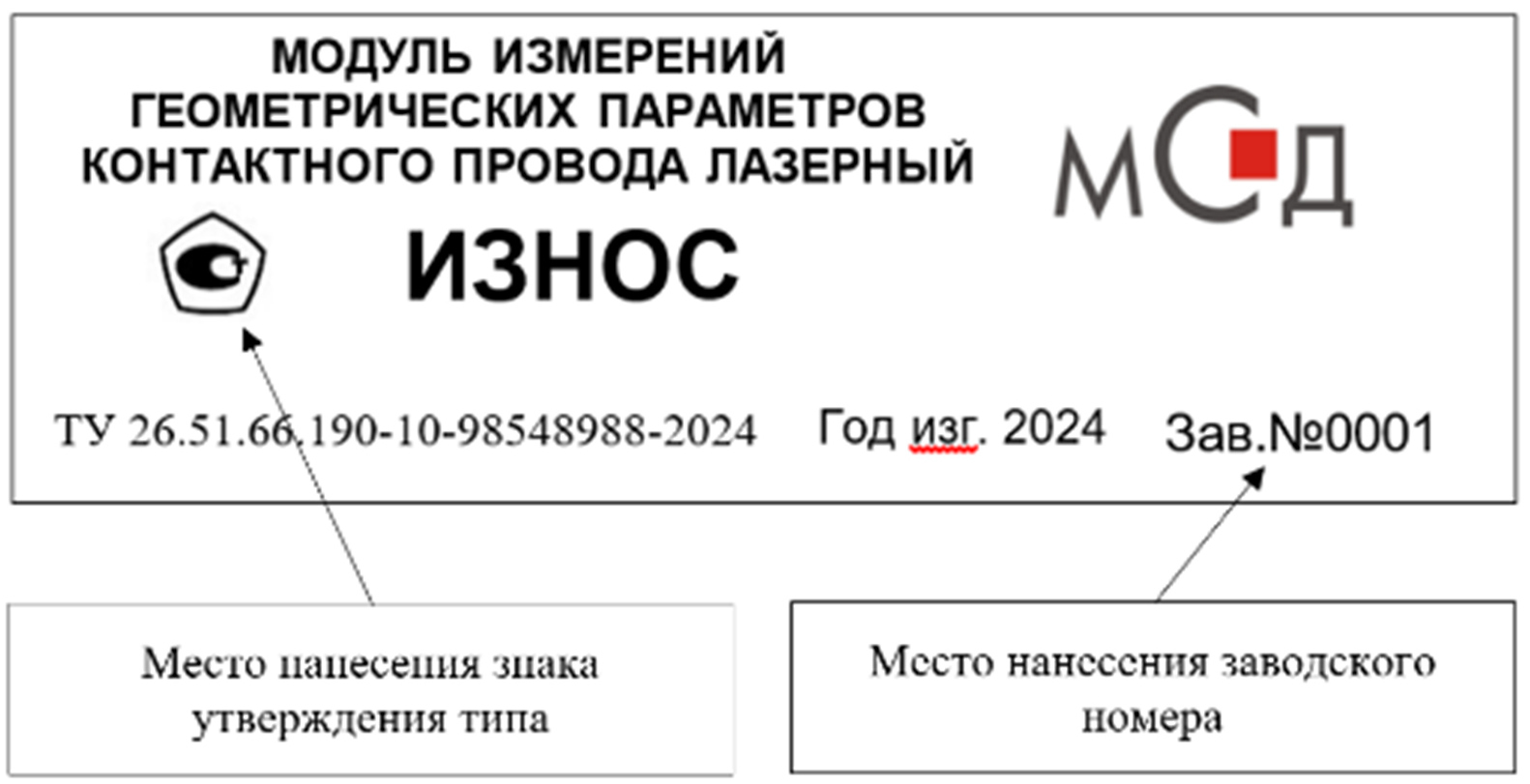 Заводской номер в виде цифрового обозначения, состоящего из арабских цифр, наносится методами шелкографии, травления, гравировки или ударным способом на маркировочную этикетку, расположенную на боковой панели модуля измерений.