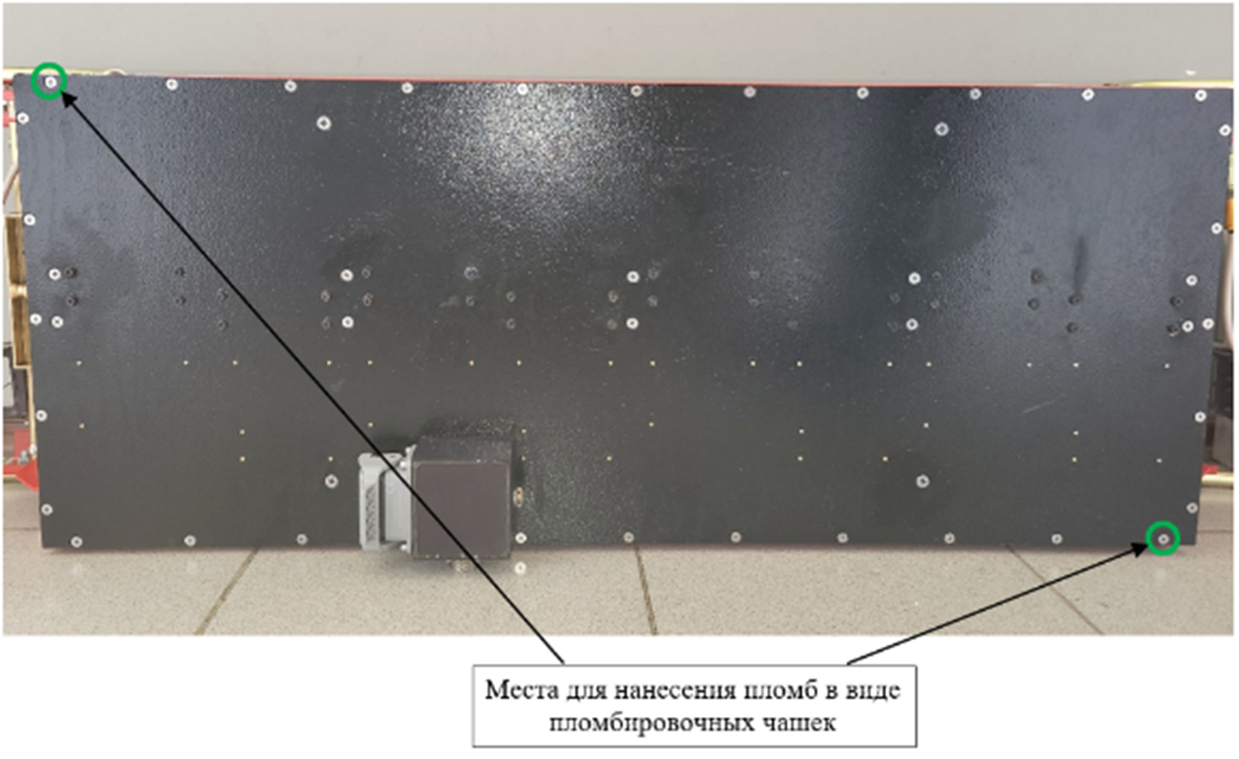 Пломбирование модулей измерений осуществляется методом установки на винтах крепления на нижней части корпуса прибора пломбировочных чашек с их последующей заливкой пластилином или мастикой. Указание мест пломбировки от несанкционированного доступа представлено на рисунке 3.