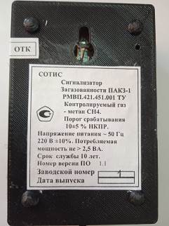 РМВП.421.451.001 ТУ «Сигнализатор загазованности ПАКЗ-1. Технические условия».