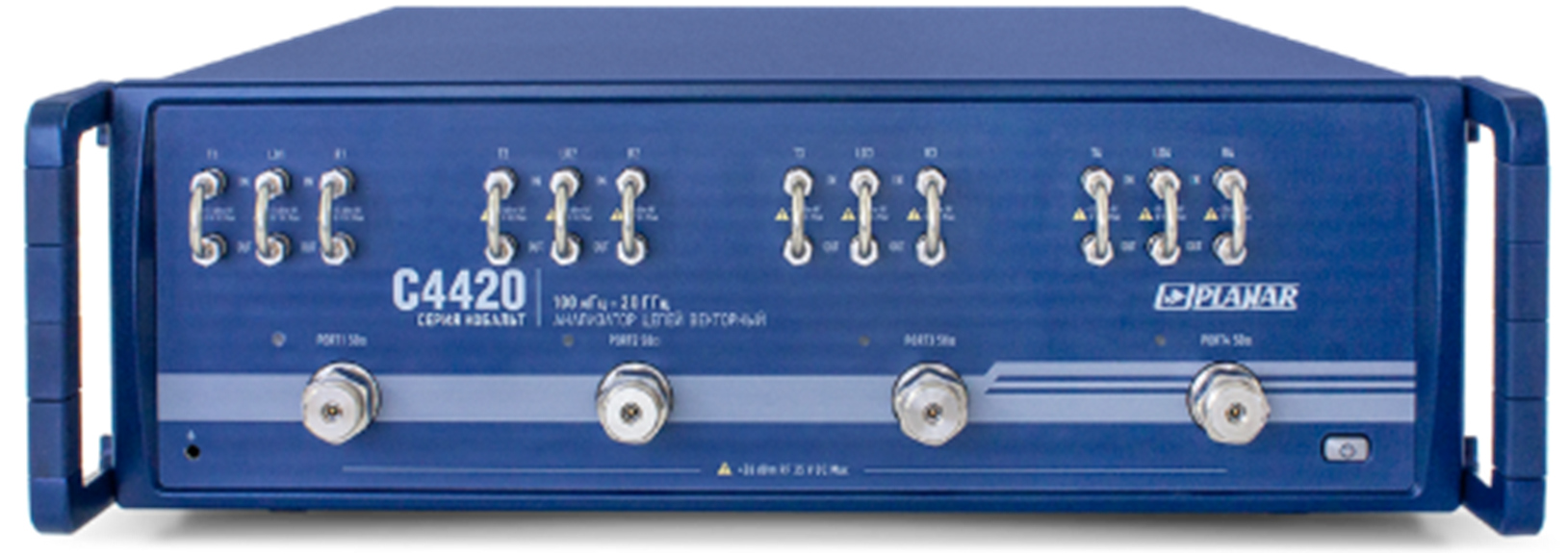 - ВАЦ Планар С4420, предназначенного для измерений отношения амплитуд и разности фаз опорного и зондирующего сигналов (комплексного коэффициента передачи системы «испытываемая антенна - антенна-зонд»). Зондирующий сигнал - это сигнал, подаваемый с выхода ВАЦ на вход испытываемой антенны или антенны-зонда и излучаемый ей, принимаемый далее антенной-зондом или испытываемой антенны и поступающий на вход ВАЦ. Результат измерений комплексного коэффициента передачи системы «испытываемая антенна - антенна-зонд» передается на персональный компьютер (ПЭВМ), где после его обработки получают значения нормируемых характеристик испытываемой антенны;