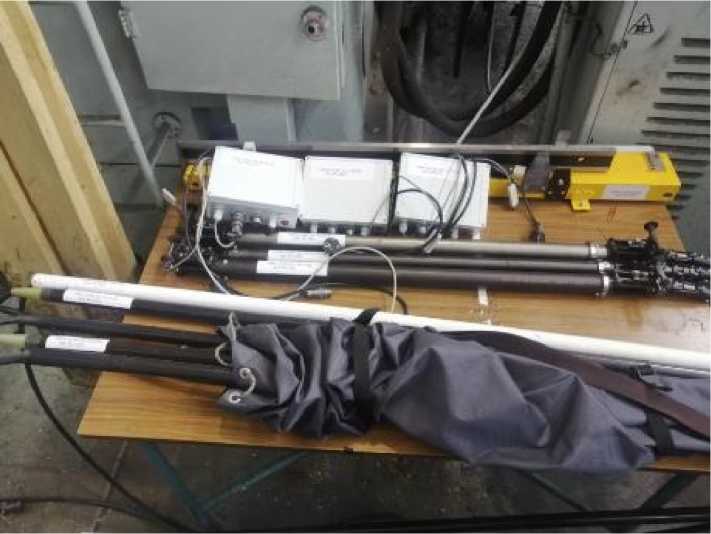 Прибор состоит из штанги, блока питания, трех измерительных блоков, блоков связи с компьютером для каждого измерительного блока и персонального компьютера.
