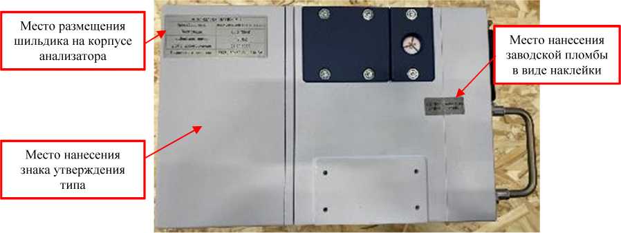Место нанесения заводской пломбы на корпус анализатора в виде наклейки обозначено на рисунке 2.