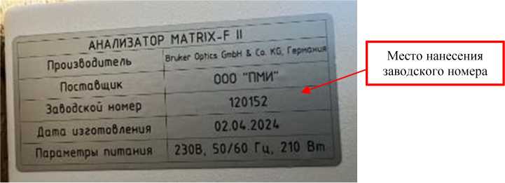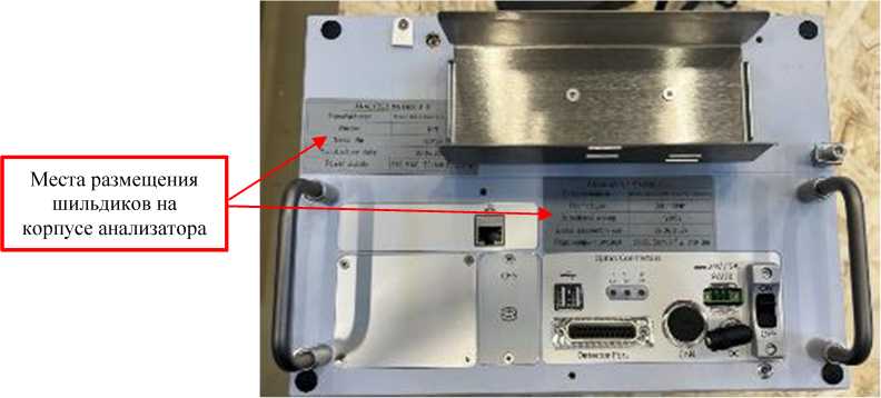 Заводской номер имеет цифровой формат и нанесен типографским способом на таблички, расположенные на боковой и задней панели корпуса анализатора (шильдики), как показано на рисунке 5.
