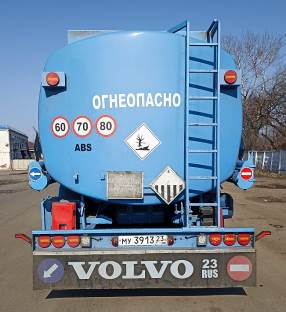 На боковых сторонах и сзади ППЦ имеются надпись «ОГНЕОПАСНО», знак ограничения скорости и знаки обозначения транспортного средства, перевозящего опасный груз.