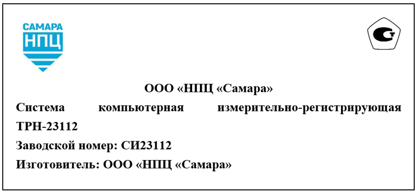 Заводской номер в виде буквенно-цифрового обозначения, состоящего из арабских цифр и букв кириллицы, нанесен на маркировочную табличку корпуса системы. Общий вид маркировочной таблички представлен на рисунке 2.