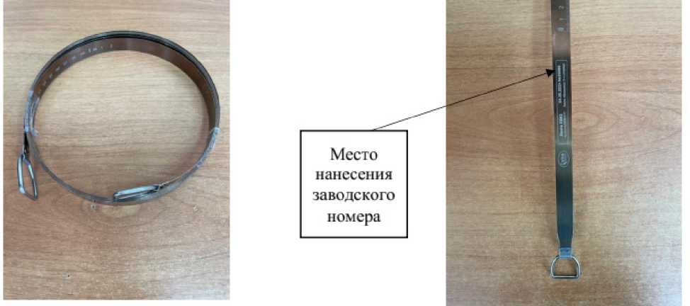 Заводской номер в виде цифрового обозначения, состоящей из арабских цифр, нанесен методом лазерной гравировки на конце ленты.