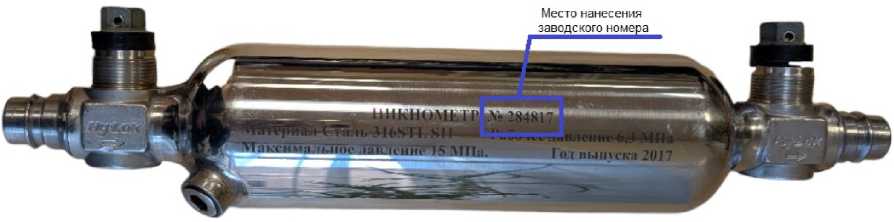 Заводской номер в виде цифрового обозначения, состоящего из арабских цифр, наносится на тело пикнометра (рисунок 1) методом лазерной гравировки.