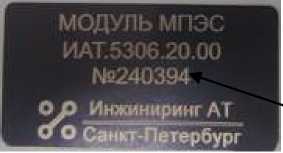 наносится на основную маркировочную этикетку методом лазерной гравировки, которая располагается на задней поверхности корпуса модуля МПЭС прибора.