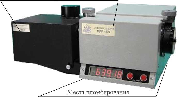 Рисунок 2 - Внешний вид, места пломбирования и маркировки комплекта монохроматора