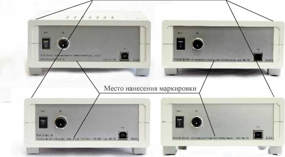 Заводской номер в виде цифрового обозначения, представляющего собой последовательность арабских цифр, располагается на задних панелях блоков РЭСМ-ВС-М (ИОМ, источников излучения, аттенюатора волоконно-оптического), нанесен методом металлографики, обеспечивающим возможность прочтения и сохранность в процессе эксплуатации.