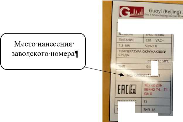 Рисунок 2 - Идентификационная табличка хроматографов газовых промышленных SFGC-3000G с указанием места нанесения заводского номера