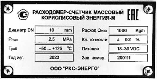 наносится на маркировочные таблички расходомера-счетчика методом фотолитографии и полиграфическим методом на титульные листы паспорта и руководства по эксплуатации расходомера-счетчика.