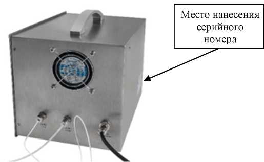 Маркировочная табличка с серийным номером расположена на задней стенке анализатора. Серийный номер имеет буквенно-цифровой формат, наносится типографским способом на клеевую этикетку. Нанесение знака поверки на анализатор и пломбирование анализатора не предусмотрено. Общий вид анализатора и место нанесения знака утверждения типа представлены на рисунке 1. Место нанесения серийного номера на анализатор представлено на рисунке 2. Общий вид титульной страницы паспорта представлен на рисунке 3.