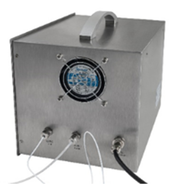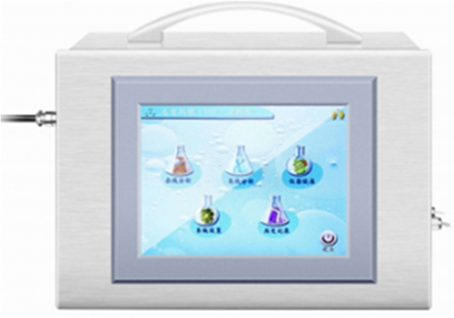 Анализатор представляет собой стационарный прибор с сенсорным дисплеем на передней панели. На боковых панелях анализатора расположены входные и выходные штуцера для подключения системы забора анализируемой воды, вентиляционные отверстия, разъемы для подключения электрического питания, тумблер включения и выключения анализатора, USB разъемы.