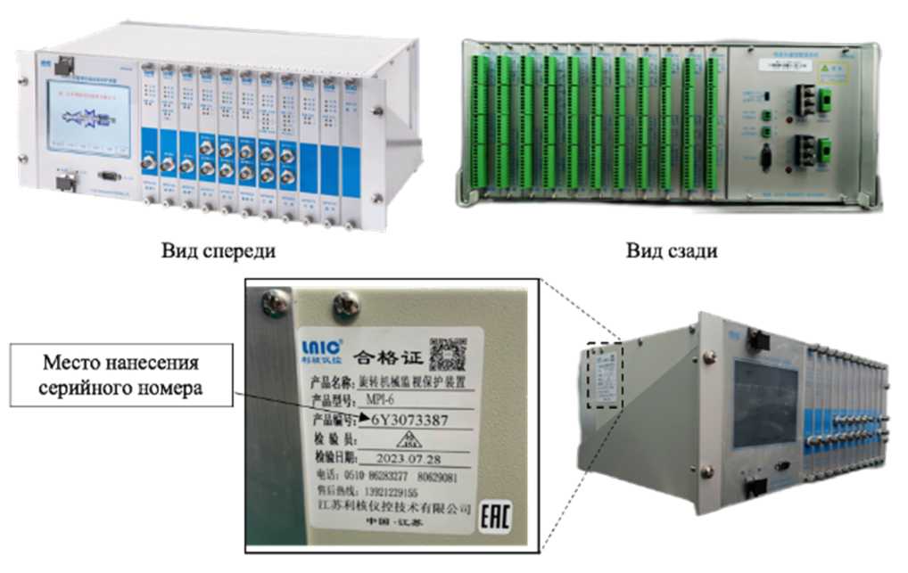 Рисунок 1 - Общий вид измерительной части системы MPI-6 и место нанесения серийного номера