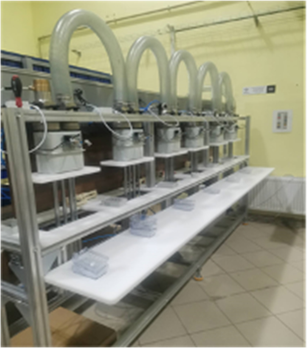 Блок задания расхода воздуха состоит из вакуумного насоса и запорной арматуры.