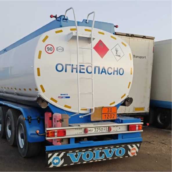На боковых сторонах и сзади ППЦ имеются надпись «ОГНЕОПАСНО», знак ограничения скорости и знаки обозначения транспортного средства, перевозящего опасный груз.