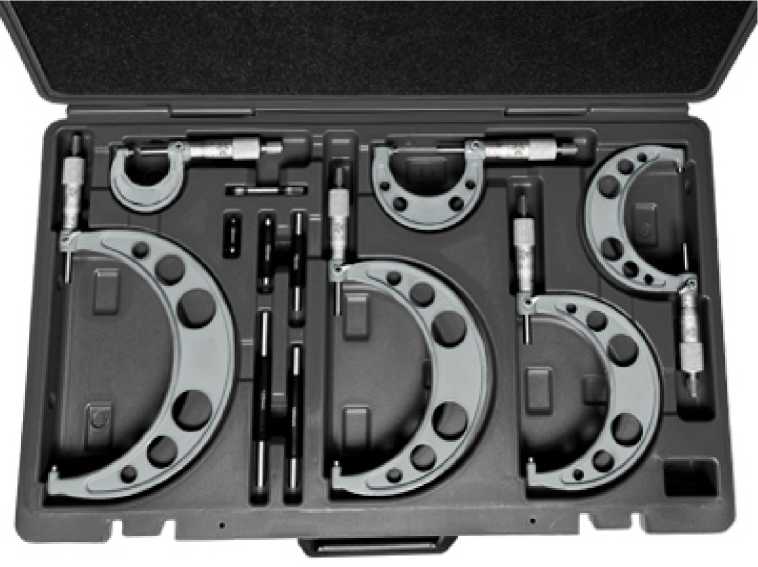 Установочные меры с плоскими измерительными поверхностями и сферическими измерительными поверхностями (для мер свыше 325 мм) входят в комплект поставки, кроме микрометров с нижним пределом измерений 0 мм.