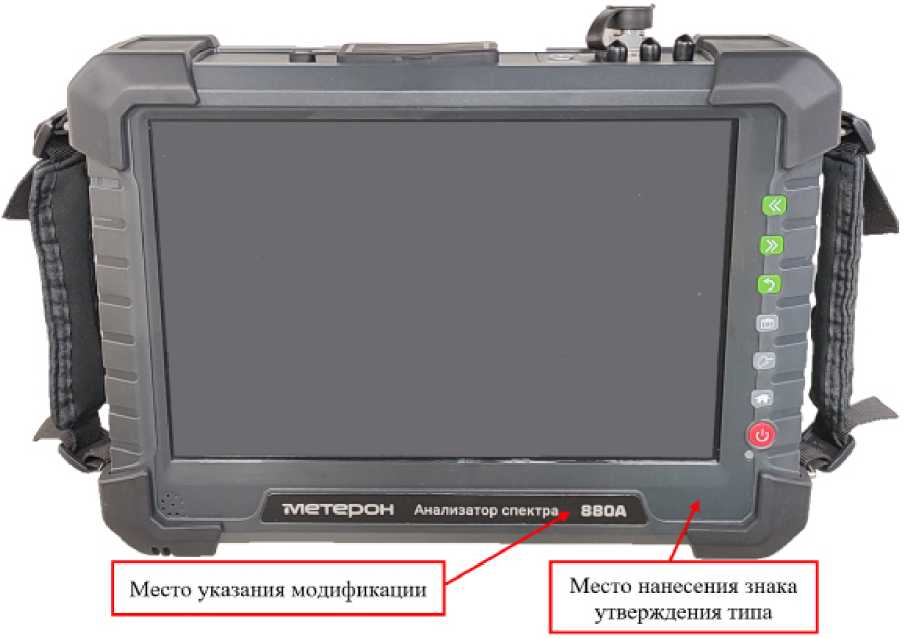 наносится на переднюю панель анализаторов спектра Метерон 880 в виде наклейки в месте, указанном на рисунке 1, и на титульный лист руководства по эксплуатации типографским способом.