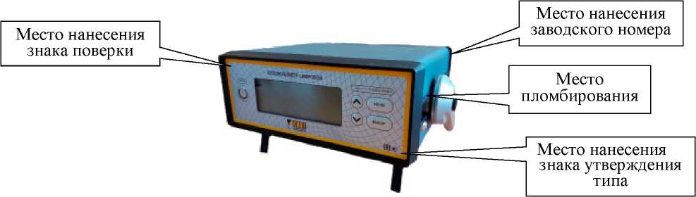 Рисунок 2 - Общий вид киловольтметров цифровых КВЦ модификаций КВЦ-70В-1,0; КВЦ-70В-0,5; КВЦ-100В-1,0; КВЦ-100В-0,5; КВЦ-120В-1,0; КВЦ-120В-0,5 с указанием мест пломбировки от несанкционированного доступа, мест нанесения заводского номер