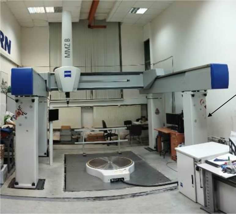 К настоящему типу относится машина координатно-измерительная MMZ B 20 30 15 с сер. № 136 542. Машина представляет собой электромеханическую конструкцию мостового типа. Главной осью КИМ является ось Y, конструктивно выполненная в виде двух направляющих балок, базирующихся на стойках. Базовой частью машины является портал (ось Х), по которому перемещается каретка (ось Z) с пинолью, несущей измерительную головку.
