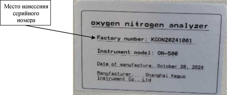 Рисунок 2 - Место нанесения серийного номера на анализаторы кислорода, азота и водорода KEGUO