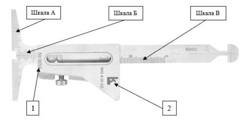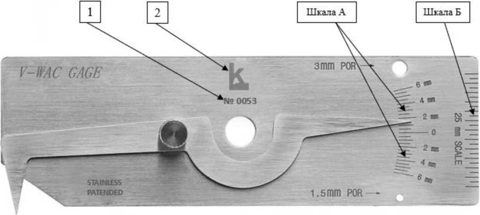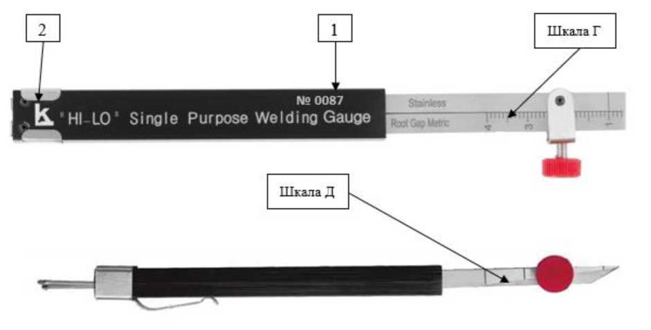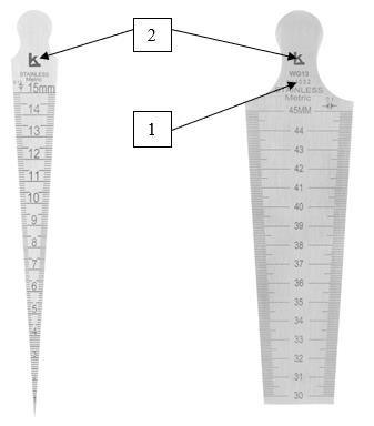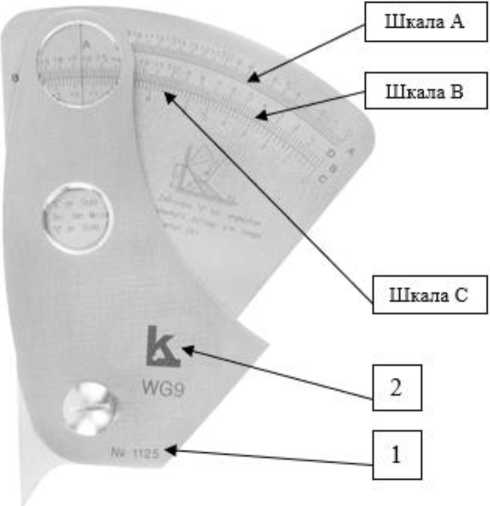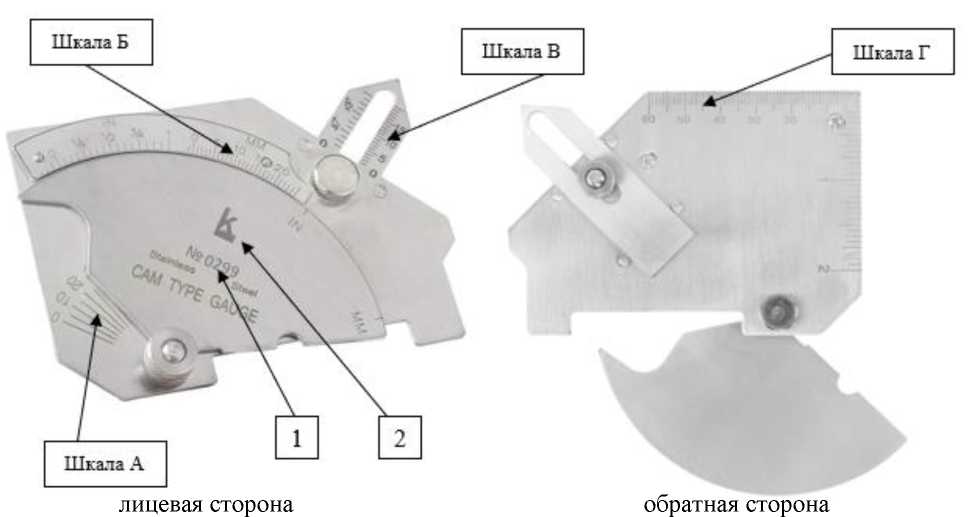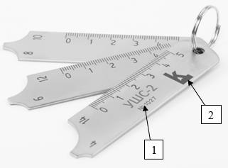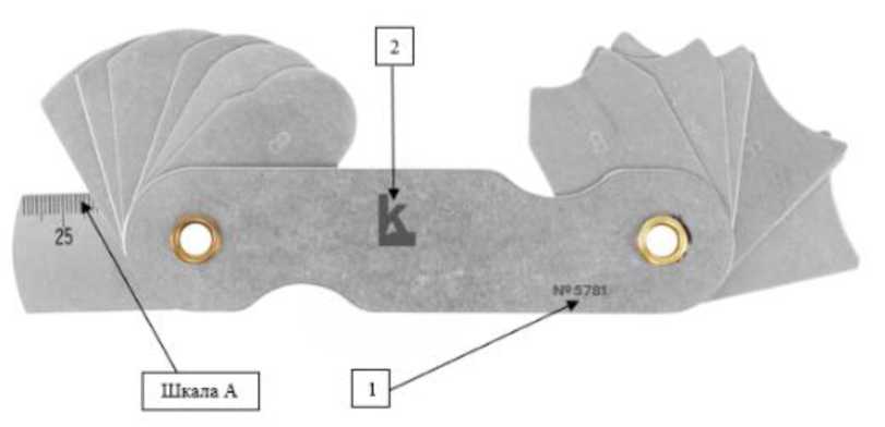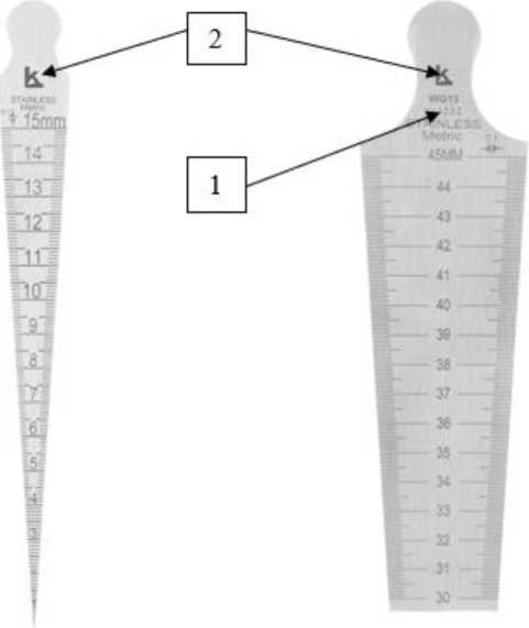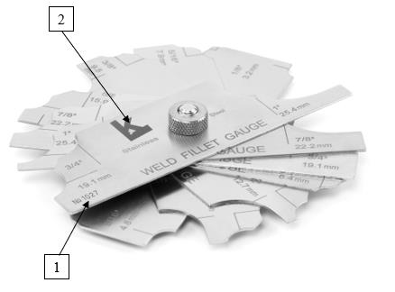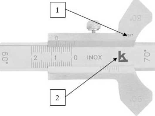 Рисунок 6 - Общий вид шаблонов сварщика модели WG-4 HI-LO Economy 1 - Место нанесения заводского номера; 2 - логотип изготовителя