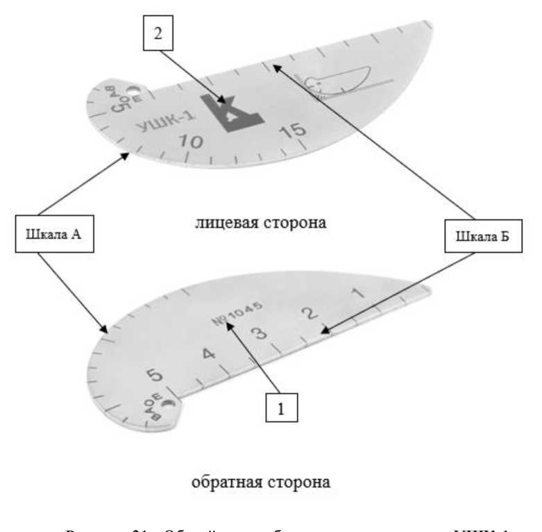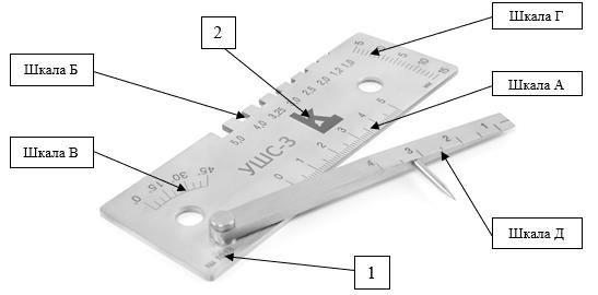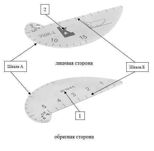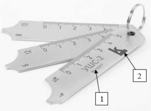 - УШК-1 - для измерений тавровых, нахлёсточных, и стыковых сварных соединений при проведении визуального и измерительного контроля. Конструктивно шаблоны сварщика модели УШК-1 представляют собой металлическую пластину, на которую нанесены измерительные шкалы;