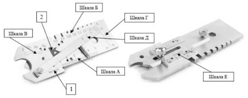 Принцип действия шаблонов сварщика основан на совмещении измеряемых элементов с подвижными и неподвижными частями шаблона и снятия отсчета со шкал.