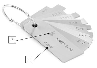 - КМС-3-16 - для измерений катетов угловых швов. Конструктивно шаблоны сварщика модели КМС-3-16 состоят из 7 металлических пластин, соединенных между собой при помощи соединительного кольца. Каждая пластина имеет выемки, промаркированные в соответствии с величинами длин катета шва;