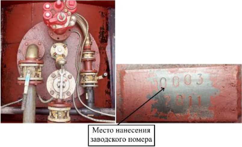 Заводские номера резервуаров 0003, 0005, 0006, 0007, 240, 0247 в виде цифрового обозначения, состоящие из арабских цифр, нанесены ударным способом на маркировочную табличку резервуара. Маркировочная табличка крепится к корпусу резервуара.