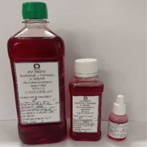 включены в маркировку, которая в виде нестираемой этикетки наносится на пластиковый флакон, в котором содержится мера. Этикетка выполнена типографским методом, обеспечивающим прочтение и сохранность маркировки в процессе эксплуатации мер. Заводской номер имеет цифровой формат. Этикетка с идентификационными данными мер представлена на рисунке 2.