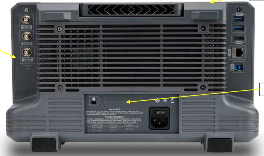 Рисунок 2 - Вид задней панели осциллографов, место пломбировки от несанкционированного доступа (Б), место нанесения серийного номера (В) и знака поверки (Г)
