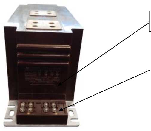 Выводы первичной обмотки выведены на верхнюю часть литого корпуса в виде контактных площадок, каждая с четырьмя отверстиями для болтов. Вторичные обмотки выведены в литую коробку для зажимов, закрытую пластмассовой крышкой и расположенную у основания трансформаторов на узкой боковой стенке. Крышка клеммной коробки пломбируется для предотвращения несанкционированного доступа.