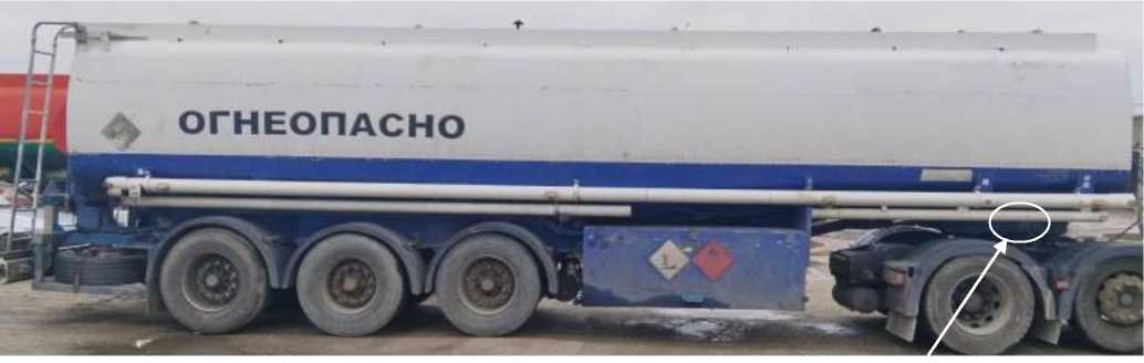 Рисунок 2 - Общий вид полуприцепа-цистерны ELLINGHAUS STA-24-39/6 зав. № 861152 и место нанесения заводского номера