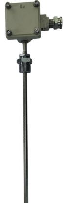 Измерительный зонд размещён в жестком защитном металлическом чехле и имеет жесткое крепление к защитной головке или защитному корпусу |