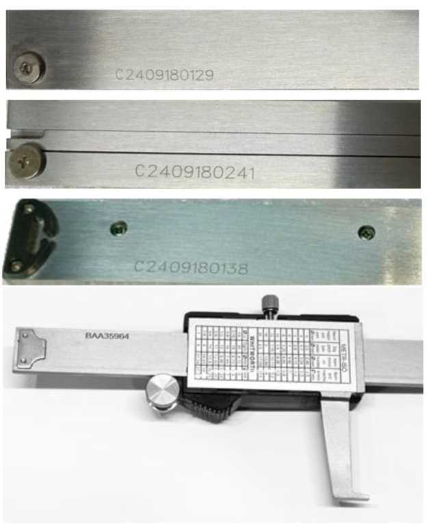 нерабочую лицевую поверхность штанги, на циферблат штангенциркулей с круговой шкалой краской или методом лазерной гравировки.