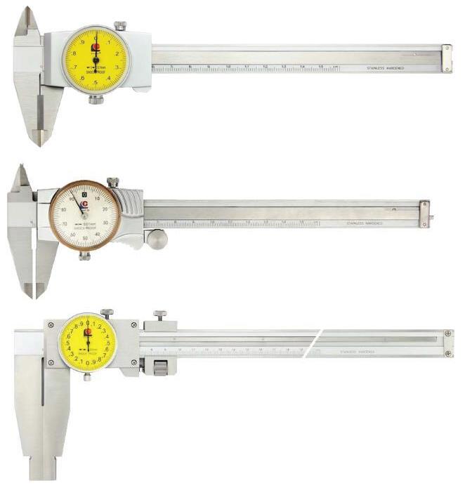 Принцип действия штангенциркулей с отсчетом по круговой шкале основан на измерении линейных размеров методом непосредственной оценки по миллиметровым делениям шкалы штанги и по делениям круговой шкалы, встроенной в рамку. Круговая шкала вращается посредством подвижного ободка и блокируется стопорным винтом.
