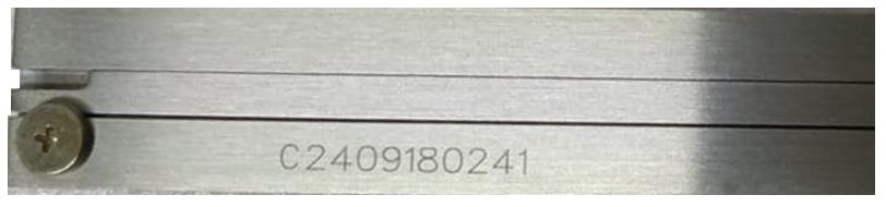Заводской номер в формате цифрового или цифро-буквенного обозначения, состоящего из арабских цифр и букв латинского алфавита, наносится на лицевую и (или) оборотную сторону штанги или заднюю сторону корпуса цифрового отсчетного устройства, методом лазерной маркировки, краски или с помощью наклейки. Возможные места нанесения заводского номера указаны на рисунке 21.