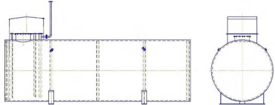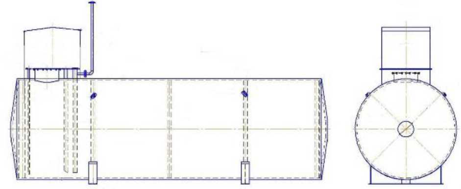 Резервуары представляют собой горизонтально расположенные цилиндрические стальные сосуды с днищами.