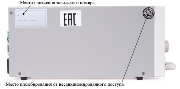 Рисунок 2 - Место нанесения заводского номера и место пломбирования от несанкционированного доступа