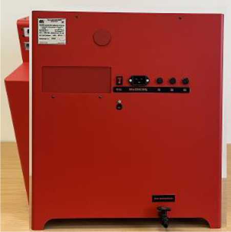 На оборотной стороне излучателя расположены клавиша включения излучателя, разъем для подключения кабеля питания, блок предохранителей и сливной кран.