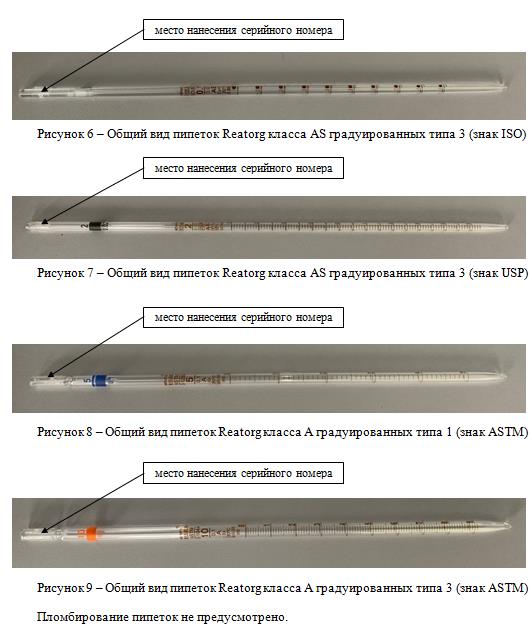 Общий вид пипеток с указанием места нанесения серийного номера представлен на рисунках 1-9.