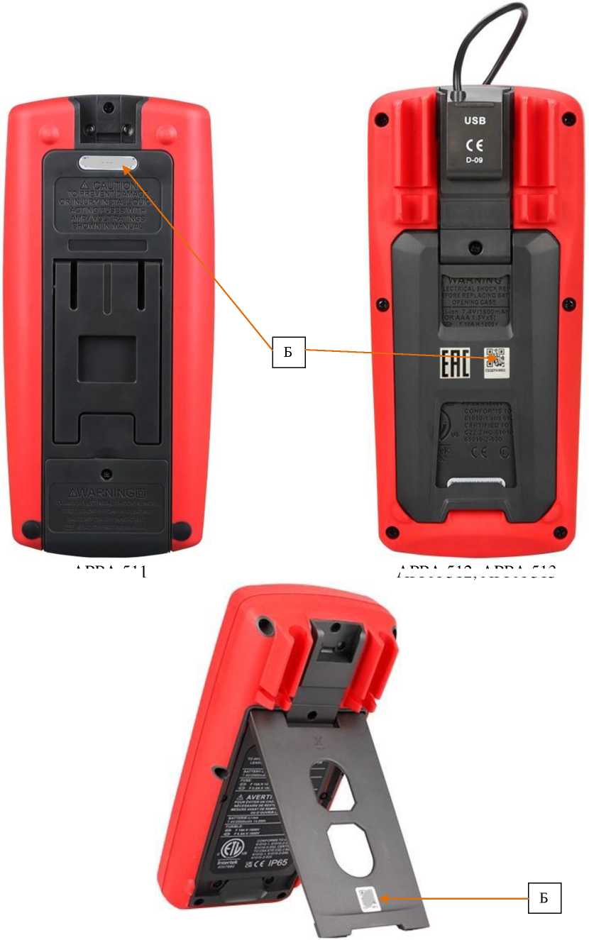 Рисунок 2 - Задний вид мультиметров и место нанесения серийного номера (Б)