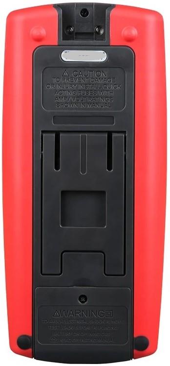 На задней панели мультиметров расположен отсек, закрытый съемной крышкой, для установки элементов питания. На мультиметры надеты защитные чехлы с упором-подставкой.
